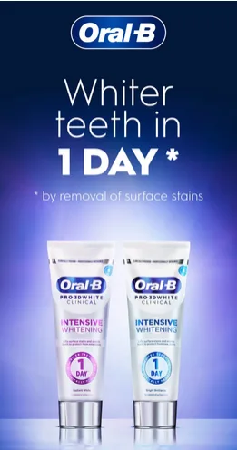 Clinically proven whiter teeth in just 1 day by removing surface stains